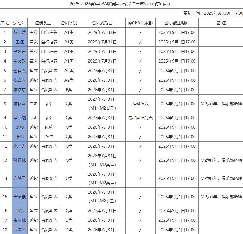 2025年8月30日CBA多支球队的注册获得了更新,其中新疆青春风暴,现在他们已经注册了14个人,其中殷召航、冯傲、张庆泽上调一队,球队存在了一半的年轻球员,这对于刘炜的压力还是比较大的,他需要担负起年轻球员的培养。
